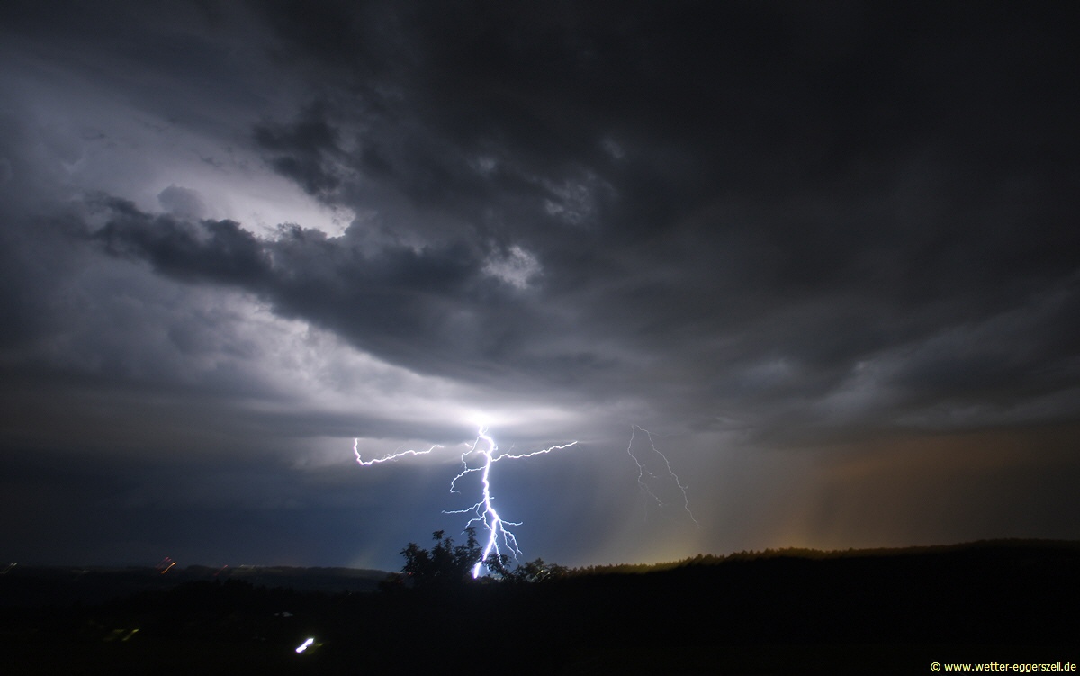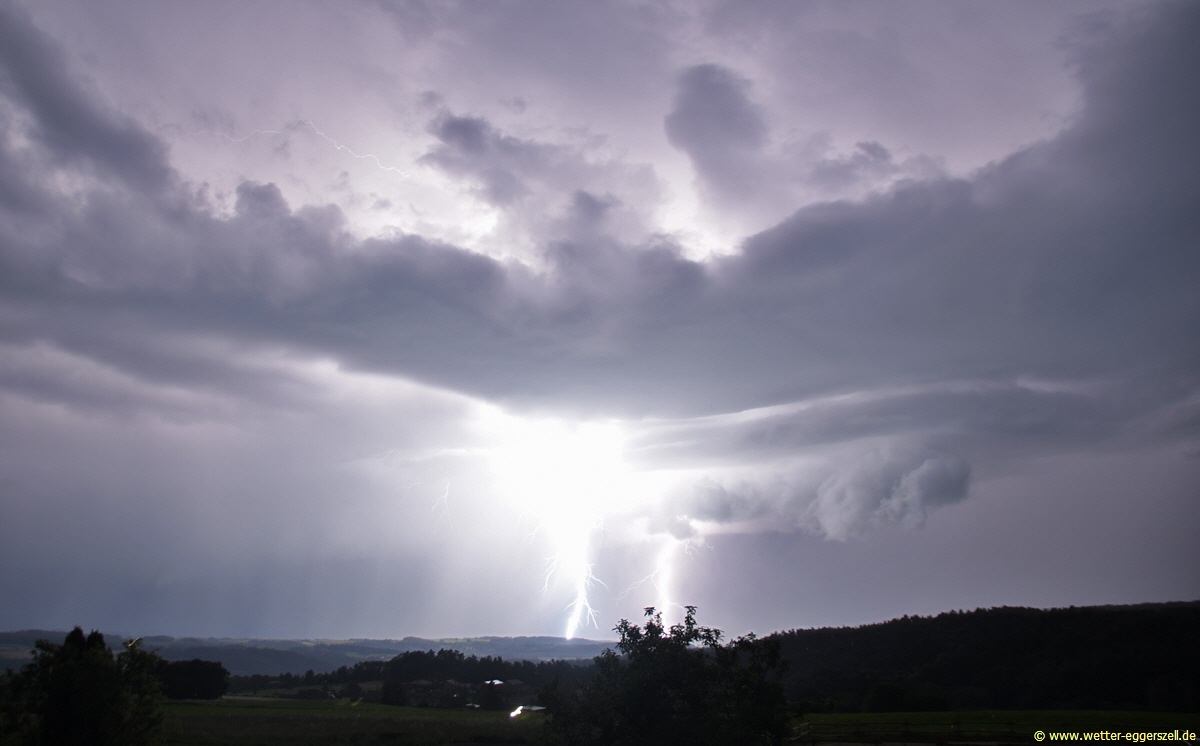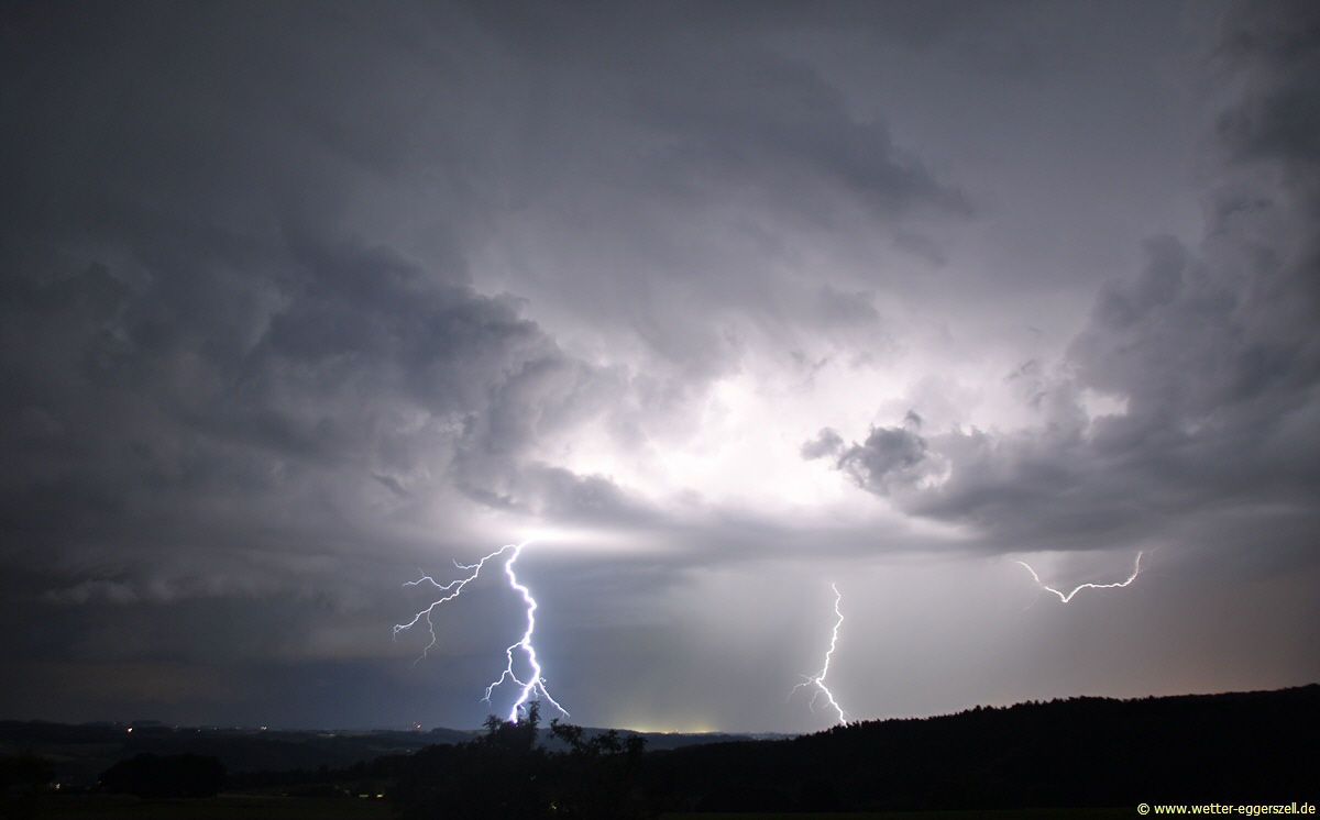 Von Eggerszell aus konnte das Blitzspektakel wunderbar mit Blick nach Süden beobachtet werden. Nachfolgend einige Blitzbilder aus Eggerszell, welche am Gelände der Wetterstation Eggerszell aufgenommen wurden: