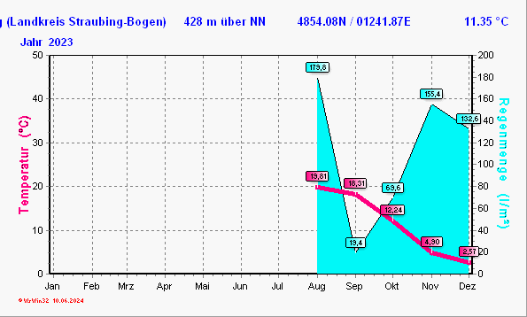 Hier finden Sie eine ausführliche Auflistung der Jahres-Wetterdaten 2023 von der Privaten Wetterstation Bogenberg.