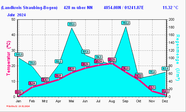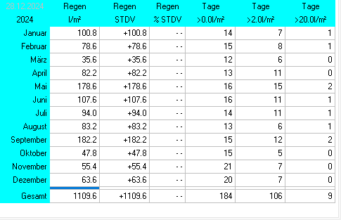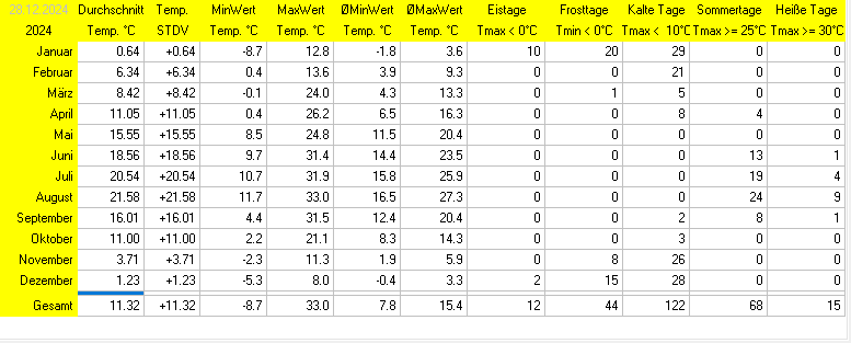 Hier finden Sie eine ausführliche Auflistung der Jahres-Wetterdaten 2024 von der Privaten Wetterstation Bogenberg.