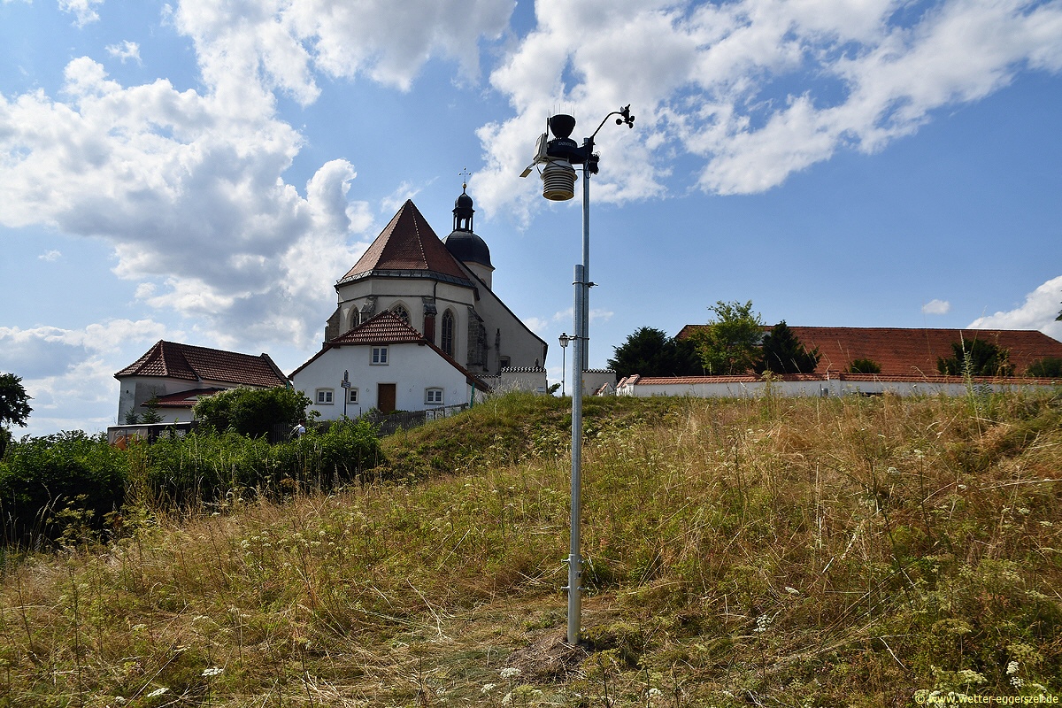 Am 05.08.2023 wurde die Wetterstation am Heiligen Berg Niederbayerns, dem Bogenberg (432 m) in Betrieb genommen. Der Aufbau der Wetterstation Bogenberg efolgte bereits zwei Wochen zuvor am 22.07.2023. Klimatisch betrachtet stellt der Bogenberg, welcher 118 Meter über dem Donautal markant empor ragt eine Besonderheit dar. Einen vergleichbaren Standort gibt es bisher im gesamten Netz des DWD (Deutscher Wetterdienst) nicht. Nicht nur klimatisch, sondern auch kultur- und kirchengeschichtlich hat der Bogenberg eine ganz besondere Bedeutung. Am Gipfel befindet sich die älteste Marienwallfahrtskirche Bayerns, die Wallfahrtskirche Mariä Himmelfahrt. Zudem ist der Bogenberg Inbegriff und Heimat des Bayerischen Rautewappens. Die mächtigen Grafen von Bogen hatten im Mittelalter hier nämlich Ihren Herrensitz. Der Bogenberg ist ein Ausläufer/Vorbote des Bayerischen Waldes. Nördlich davon geht es in den Bayerischen Wald über, südlich davon befindet sich der weite flache fruchtbare Gäuboden. An so einem gleich in vielerlei Hinsichten bedeutsamen Standort, darf eine Wetterstation auf keinen Fall fehlen, deshalb freuen wir uns von nun an auf eine künftige kontinuierliche Wetterdatenaufzeichnung!