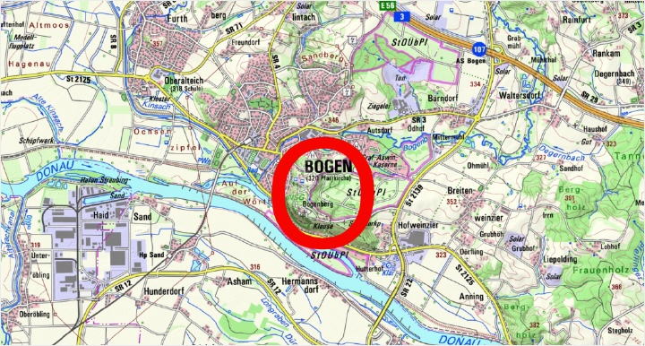 Umgebungskarte vom Bogenberg: