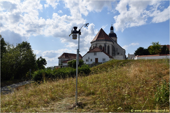 Die Wetterstation am Bogenberg (432 m) bei freundlichem Sommerwetter kurz nach Aufbau am 22,07.2023: