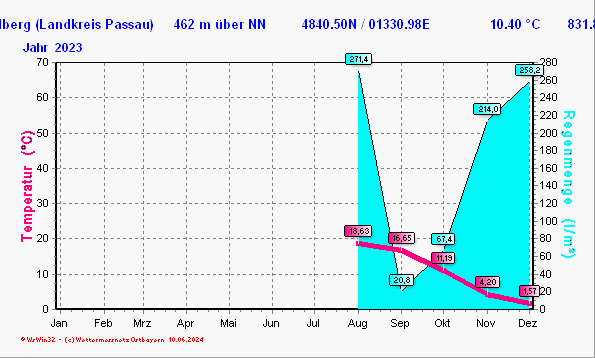 Hier finden Sie eine ausführliche Auflistung der Jahres-Wetterdaten 2023 von der Privaten Wetterstation Büchlberg.