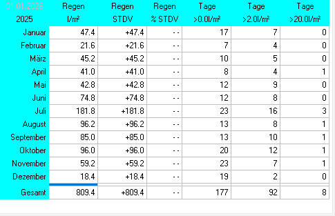 Hier finden Sie eine ausführliche Auflistung der Jahres-Wetterdaten 2025 von der Privaten Wetterstation Büchlberg.