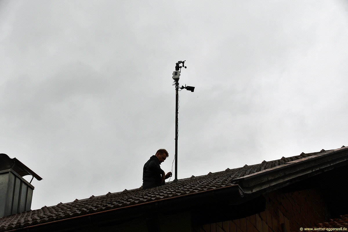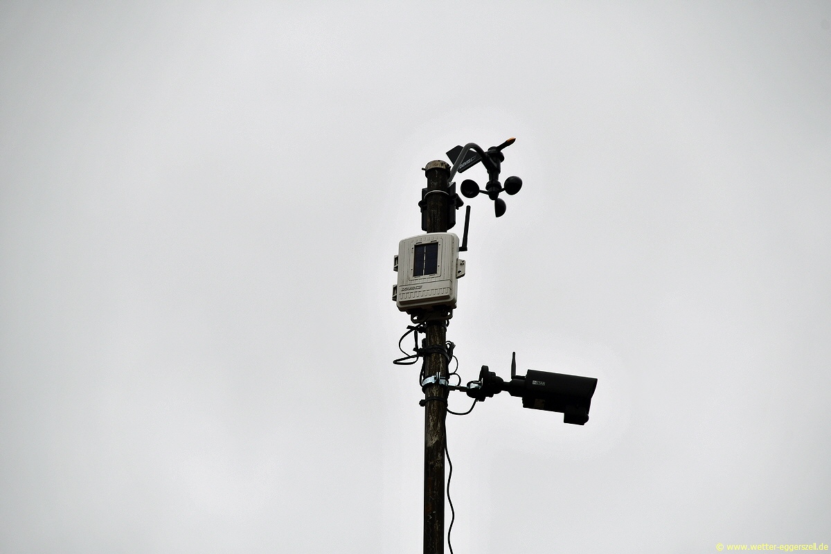 Der Windmast der Wetterstation Büchlberg befindet sich auf dem Hausdach in ca. 2 Meter über der Dachfirst, sodass eine optimale Windmessung in ca. 10 Meter über dem Erdboden gewährleistet ist. Zudem ist auch die Wetterwebcam der Station Büchlberg am Windmast auf dem Hausdach angebracht und zeigt ständig den Live-Blick nach Nordosten: