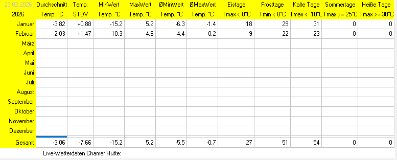 Jahreswerte 2026 - Temperatur: