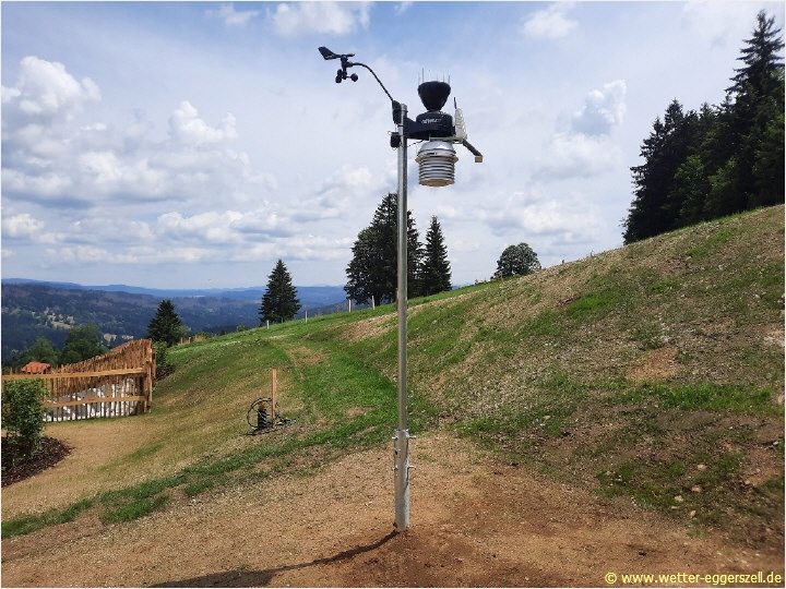 Hier können Sie Fotos von der Wetterstation in Mitterfirmiansreut im Hinteren Bayerwald sehen. In den kommenden Wochen folgen überarbeitete Bilder in höherer Auflösung! Die Fotos wurden kurz nach Inbetriebnahme der Wetterstation Mitte Juli 2024 aufgenommen: