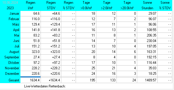 > Zu den detaillierten Wetterdaten des Jahres 2023 der Wetterstation Rettenbach gelangen Sie hier! <