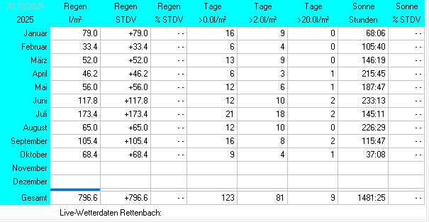 > Zu den detaillierten Wetterdaten des Jahres 2025 der Wetterstation Rettenbach gelangen Sie hier! <