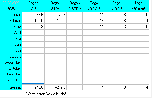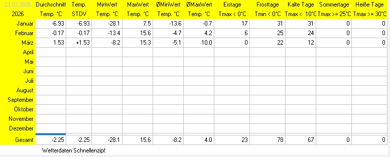 Hier finden Sie eine ausführliche Auflistung der Jahreswerte 2026 von der Privaten Wetterstation Schnellenzipf: