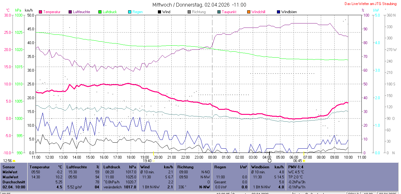 Hier finden Sie eine detaillierte grafische Übersicht der aktuellen Wetterdaten (der letzten 24 Stunden) der Station Straubing: