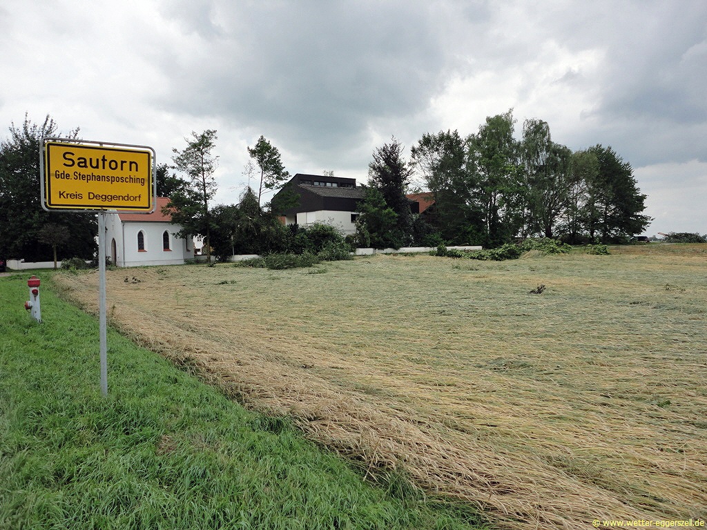 In einer kleinen Ortschaft names Sautorn südwestlich von Plattling war allerdings alles anders! Laut einiger Medienberichte soll dort angeblich ein Tornado gewütet haben. Dieser Spur wollte ich natürlich unbedingt nachgehen und ich machte mich zusammen mit Thomas Höferer aus Parkstetten auf dem Weg nach Sautorn und begutachtete dort die Schäden. Ich stand dem angeblichen Tornadofall anfangs sehr skeptisch gegenüber, dies sollte sich aber nach dem Besuch im Ort stark ändern!