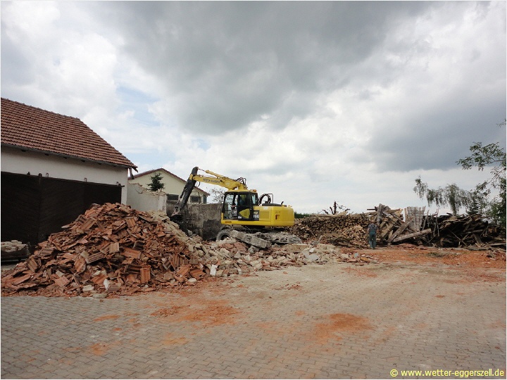 Schließlich gingen wir dann ortseinwärts und uns wurde nach den ersten eingestürzten Häusern bald sehr deutlich klar mit welcher unheimlichen Wucht das Gewitter hier durchzog. Die Menschen hier im Ort waren gerade alle fleißig mit den Aufräumarbeiten beschäftigt: