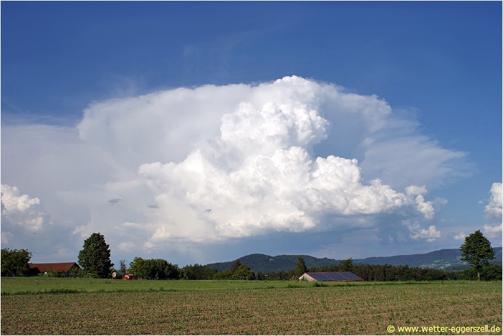 Freistehender Cumulonimbus mit frischen Quellungen an der Südseite: