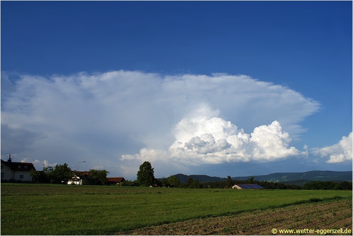 Ansonsten schossen auch in anderen Regionen im Bayerwald Quellwolken hoch, welche kurze aber heftige Regengüsse brachten. Hier im Bild eines kleinen aber feinen Gewitter bei Zinzenzell im Landkreis Straubing: