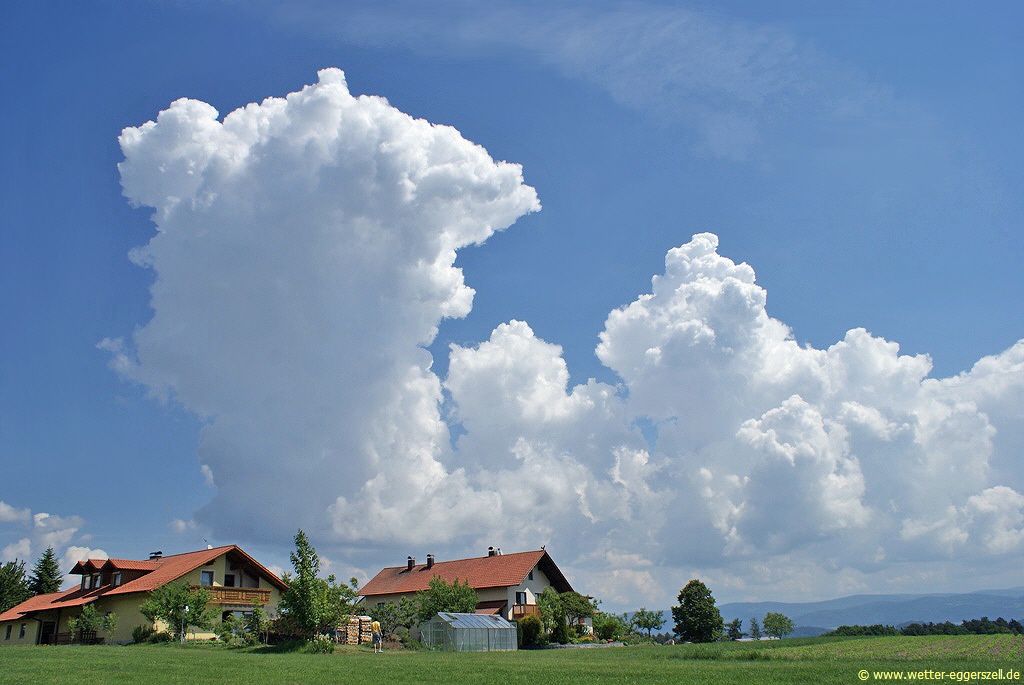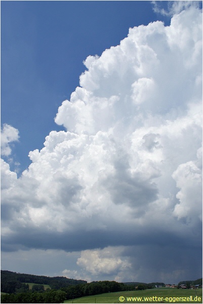Kurze Zeit später bildete sich etwas nördlich von Eggerszell ein weiteres Hitzegewitter. Zuvor konnte man einen tollen Aufwindturm beobachten:
