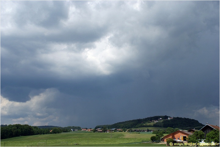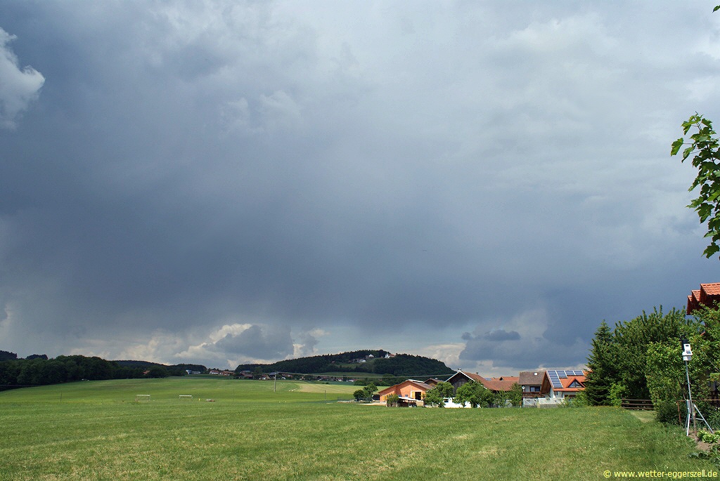 Knapp hinter dem 624 m hohen Pilgramsberg im Vorderen Bayerwald ging es nun heftig zur Sache: Dauergeblitze, Starkregen und Hagel: