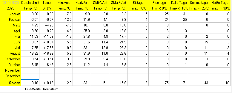 Jahreswerte 2025 - Temperatur: